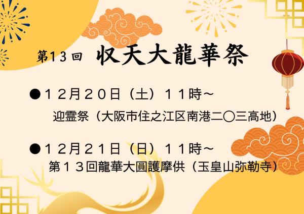 12月21日(日)、玉皇山弥勒寺(兵庫県三田市尼寺)にて、「収天大龍華祭」が行なわれます。