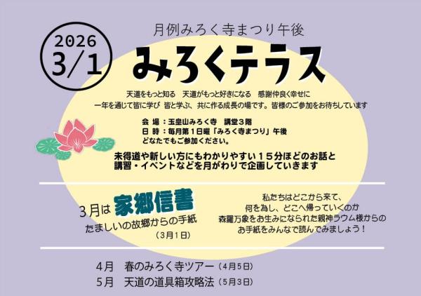 私たちが生まれてきた意味、最後に帰るべき場所はどこか。その答えの詰まった「家郷信書」を読んで、学んでみましょう。 多くの方のご参加をお待ちしています。